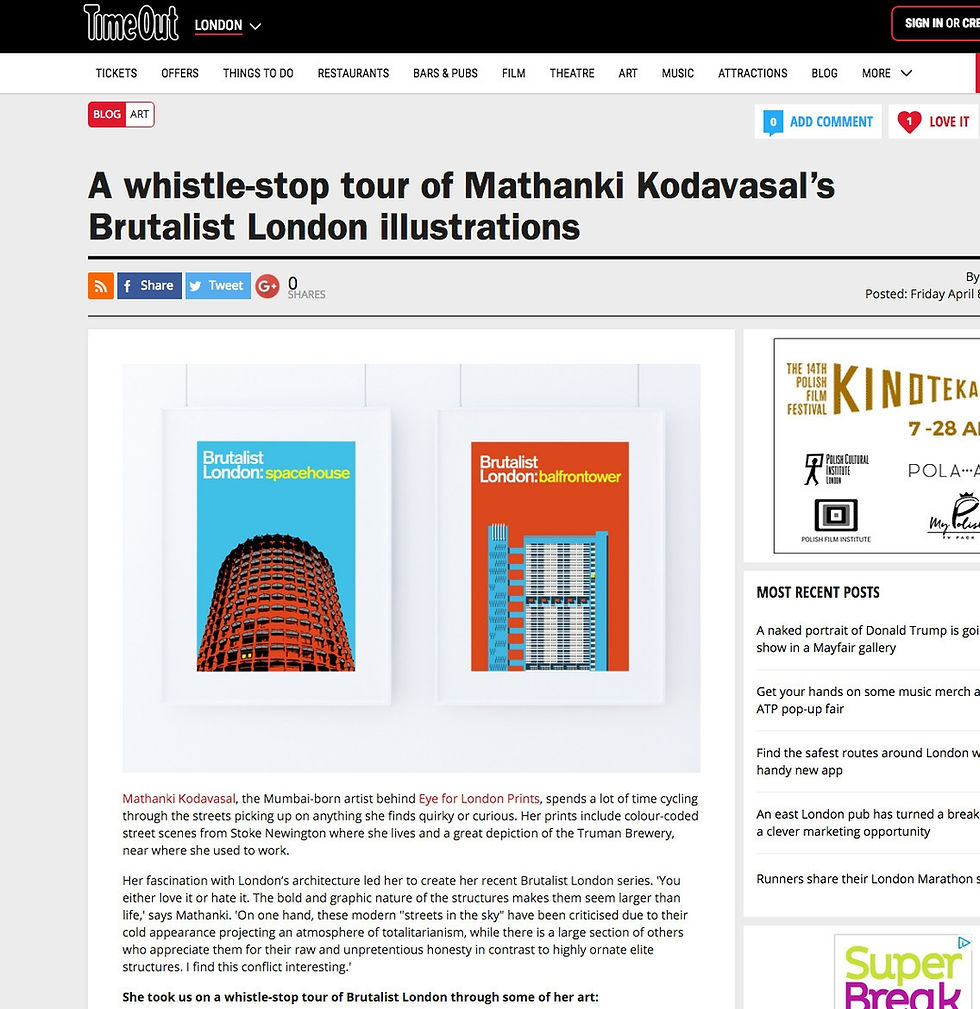 Excited and humbled to be featured on TimeOut London. Take the whistle- stop tour featuring London's most famous Brutalist structures- The Spacehouse, Balfron Tower, The Barbican and The National Theatre. This illustrated series of prints is indeed very special.Would love to hear your comments!